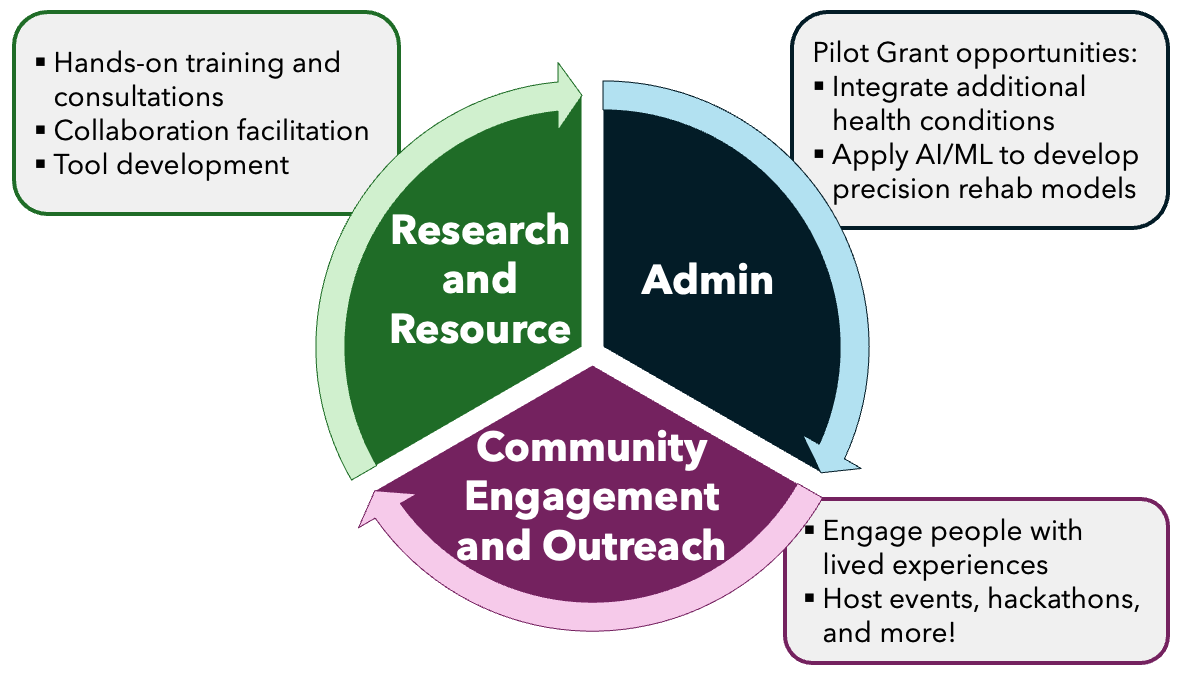 The goal of the DAPR Center is to generate large, harmonized rehabilitation datasets that will enable artificial intelligence (AI) and machine learning (ML) methods for precision rehabilitation and improve the rigor of medical rehabilitation research.